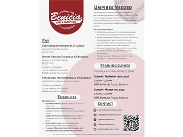 Sunday, March 7th, 2026 2:00pm - 3:30pm, BMS Softball Fields, Benicia